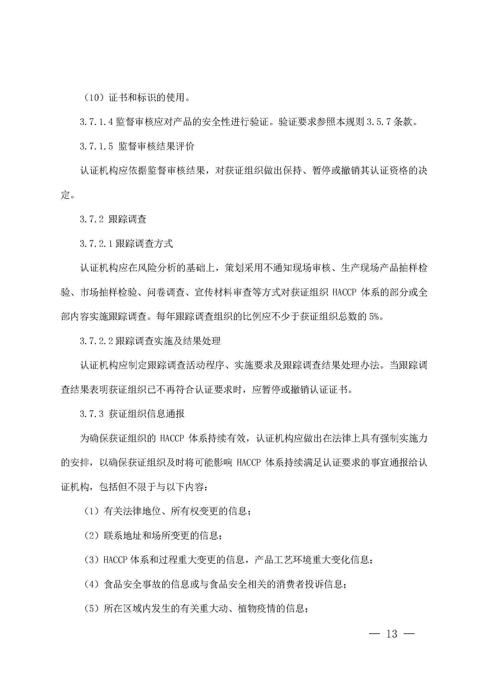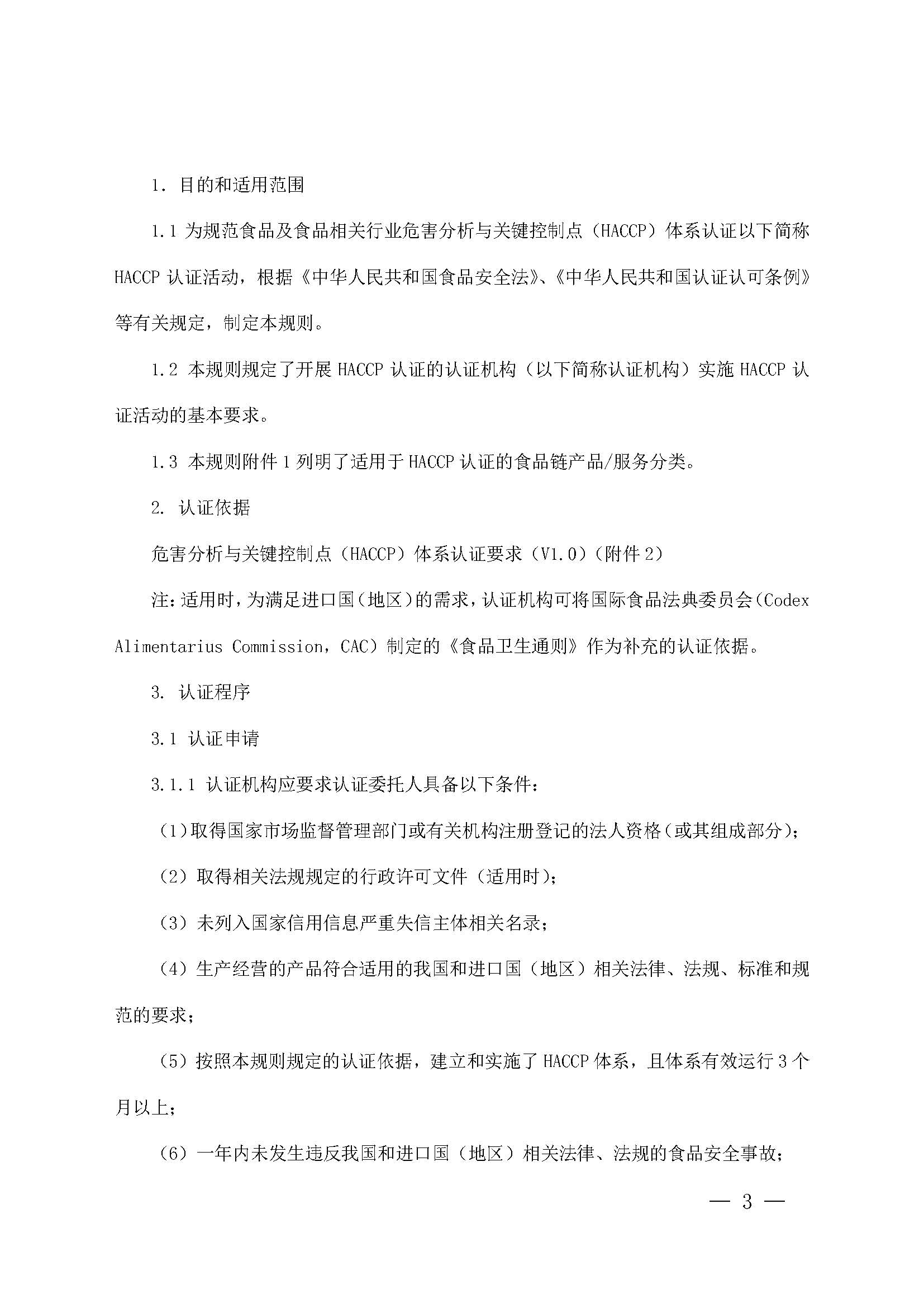 危害分析與關(guān)鍵控制點(diǎn)體系認(rèn)證實(shí)施規(guī)則